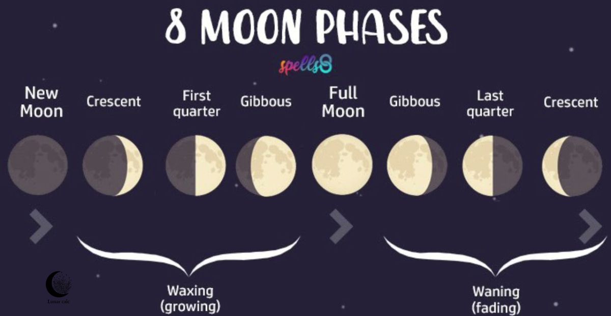 There are eight main phases from New Moon to Full Moon and back again.